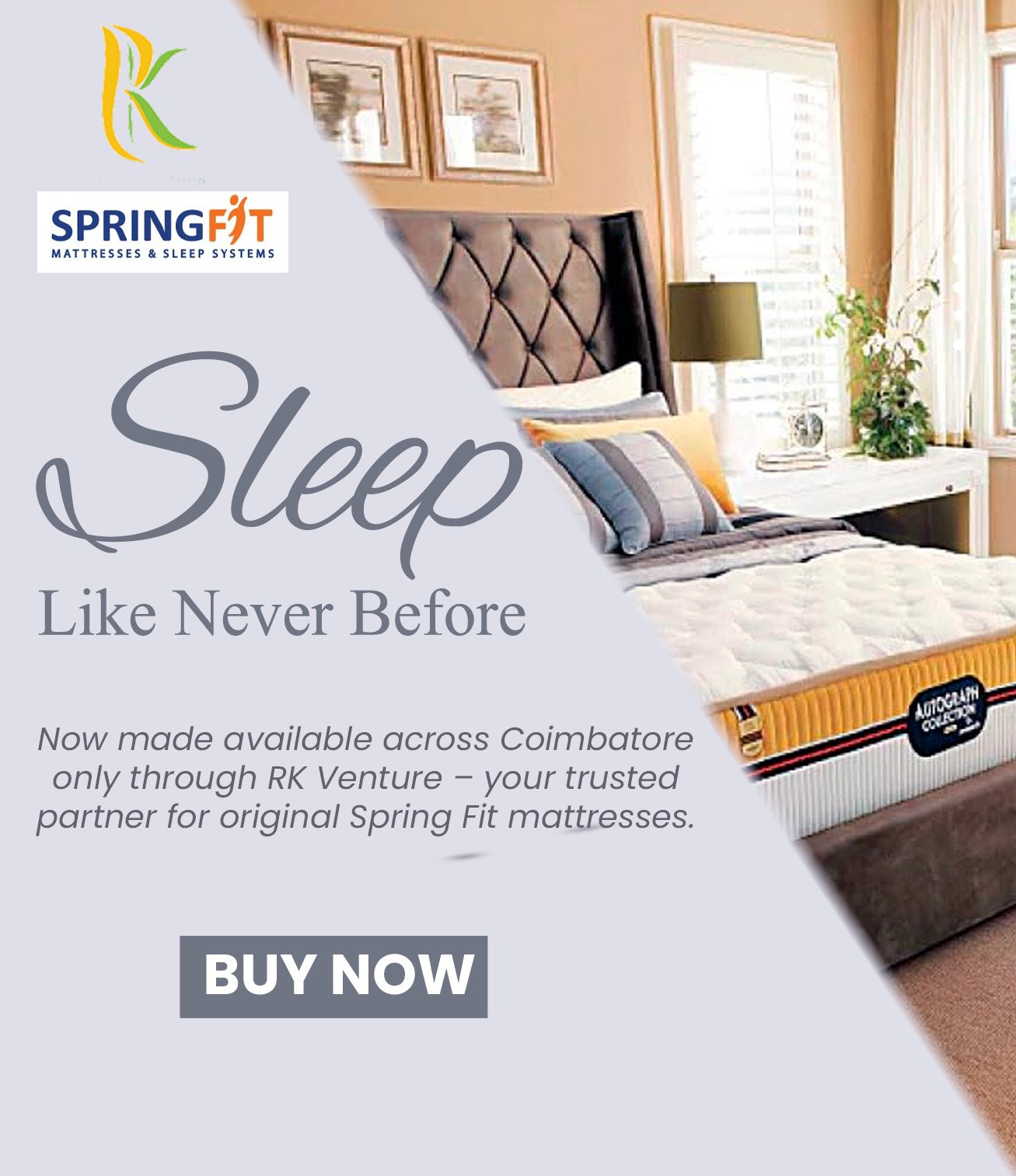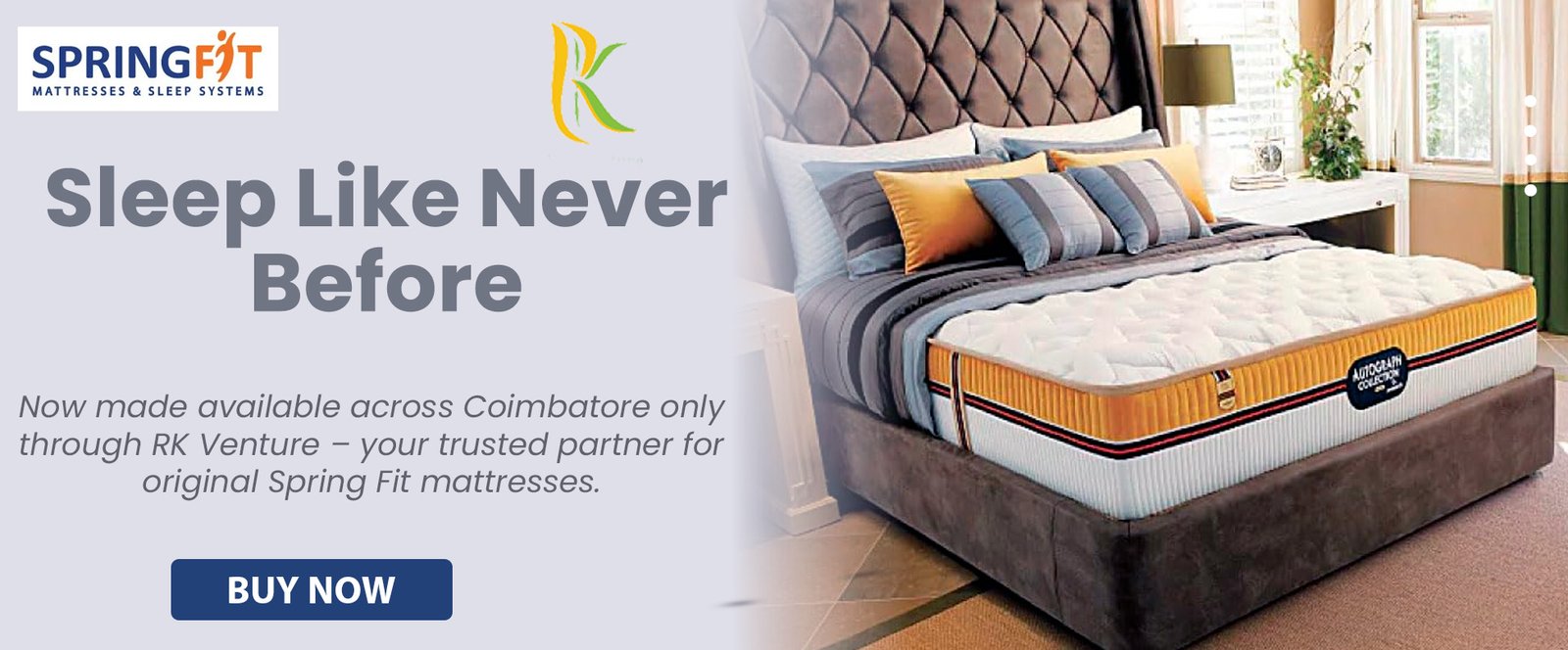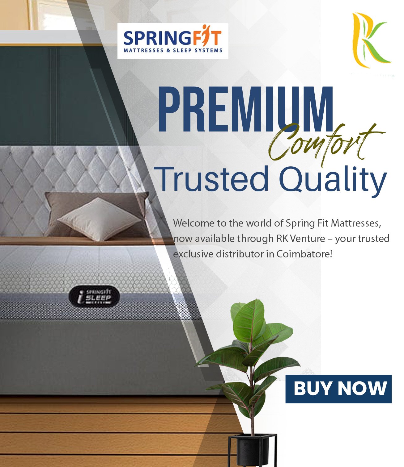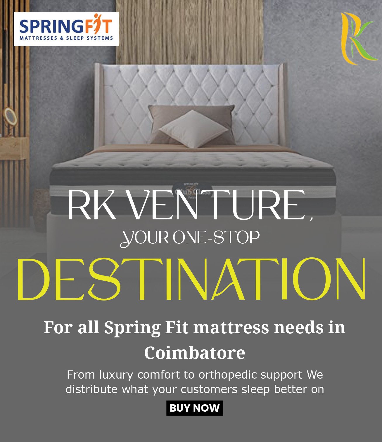 At RK Venture, we know that quality materials are the foundation of a great night’s sleep. That is why our mattresses are made with high-density foam, premium latex, and cutting-edge memory foam technology—providing the optimal combination of softness and endurance. Each layer is engineered to relieve pressure points and offer the best support, allowing you to sleep peacefully and wake up energized. Springfit Mattress Coimbatore combines innovation and excellence to deliver an unmatched sleep experience.