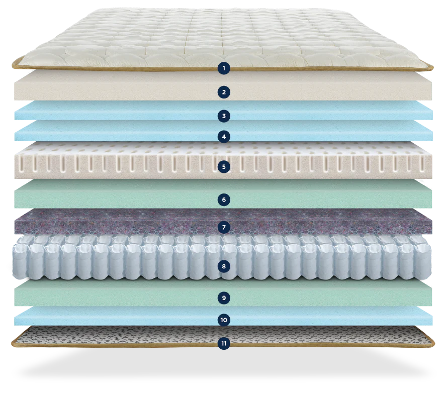 Made with biodegradable materials, Latex is a resilient material, it can support sleepers with placing excess pressure on hips and shoulders, and contours just enough to support proper alignment. Latex promotes a healthy and safe material to sleep-on.