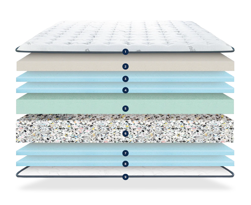 Designed with a stress-repairing concept, Reactive foam re-bonding shredded pieces of high-grade foams into a single piece. The process makes it very dense and provides a solid and firm support base. The extraordinary density ensures ample support for the spine and the optimal distribution of body weight.