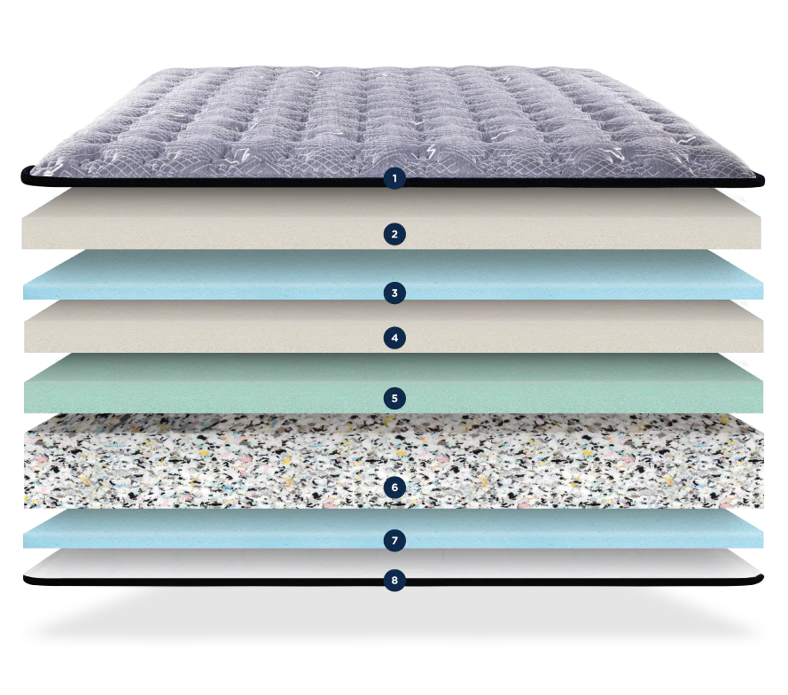 Designed with a stress-repairing concept, Reactive foam re-bonding shredded pieces of high-grade foams into a single piece. The process makes it very dense and provides a solid and firm support base. The extraordinary density ensures ample support for the spine and the optimal distribution of body weight.